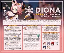 Diona can provide support for your dps units while providing cryo reactions for melt and superconduct. How to maximize diona's shield with infinite duration? #genshin #diona #buildhuge genshin diona build guide for patch 1.5! This build focus on diona as a healer and keeping her allies healthy. Moreover, the attack increases the elemental burst capacity of the whole crew by 20%.